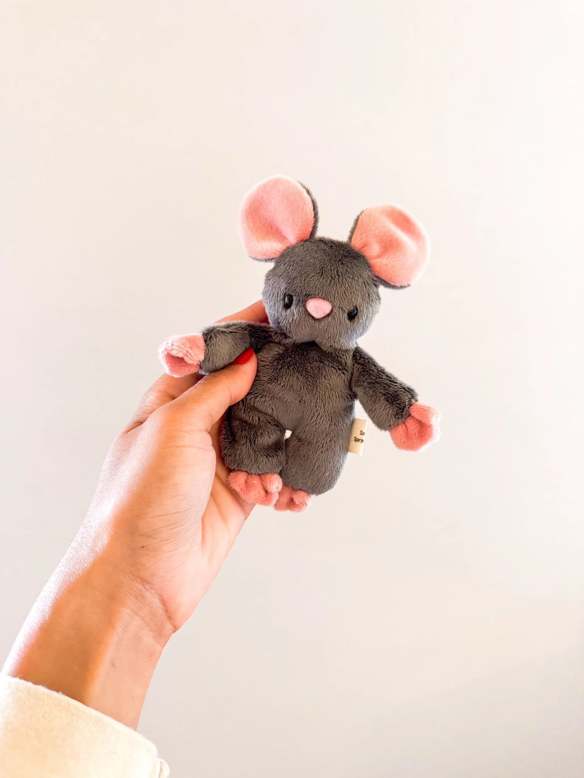 This mouse is a travel sized sprinkles, weighted just right for a loving feel. Emotional support plushies. Made for hand sized hugs, purses, desks, pockets.... The list is never ending. Made to last with love and attention to every detail!